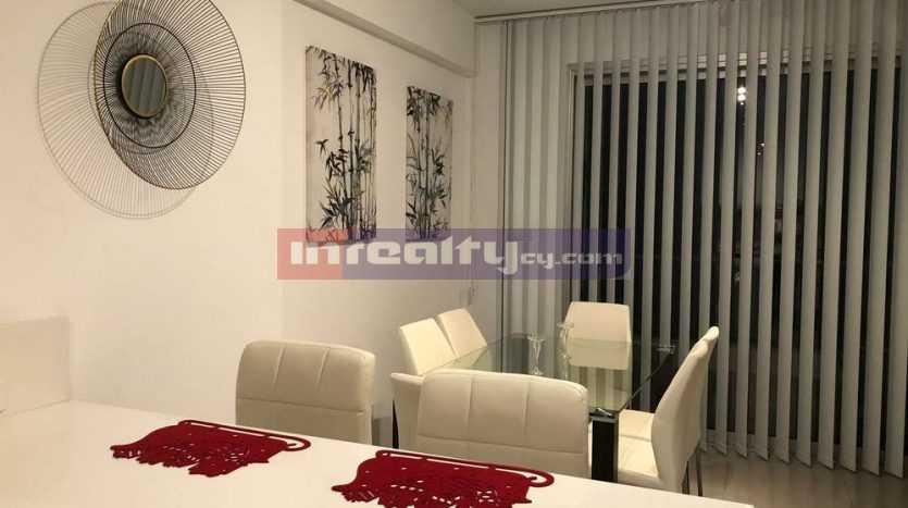 • At present, the apartment is partly furnished with a dining table and chairs, two bar stools, a lounge and a double bed.