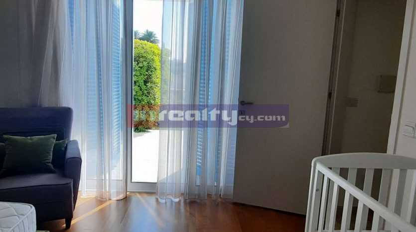 An exclusive waterfront development combining elegant residences and a full service marina, with its own shopping and dining area in the heart of Limassol. Complex provides direct access to the beach and common swimming pool. This 3-bedroom is located on the ground floor and has a 70m2 garden. It is fully furnished and consists of the master bedroom with en-suite with a shower, 2 smaller bedrooms, a bathroom, a living room with an open plan fully equipped kitchen and veranda. The flat is very brig ht and is fully air-conditioned.