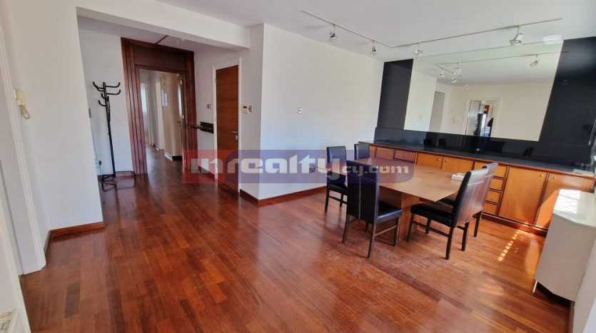 Set in a unique location by the sea with a view which overlooks the mountains, shopping centers, it offers all amenities within walking distance. This originally 3 bedroom top floor apartment for rent 200 sqm .Luxury furnishing with a/c, c/heating, covered veranda separate kitchen guest toilet, 1 bath and 1 shower. Property is covered with parket wooden flooring throughout, 2 parking, 1 storage. Must be seen to be fully appreciated.