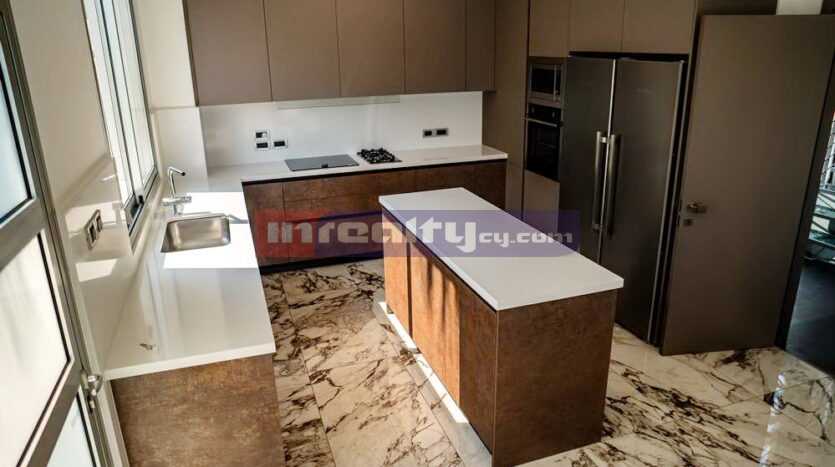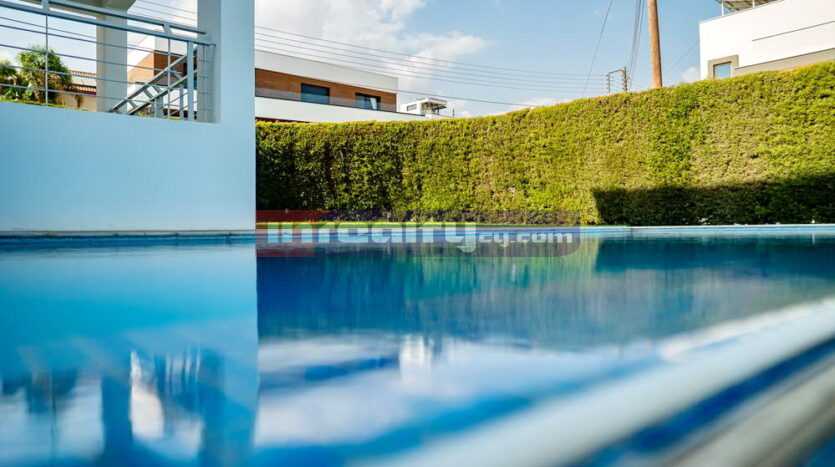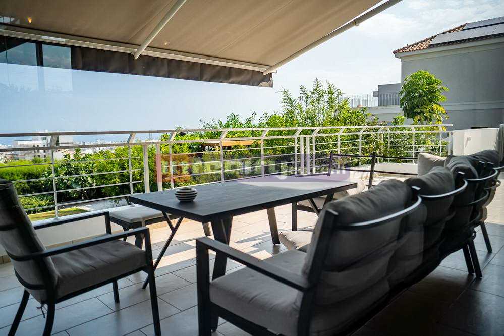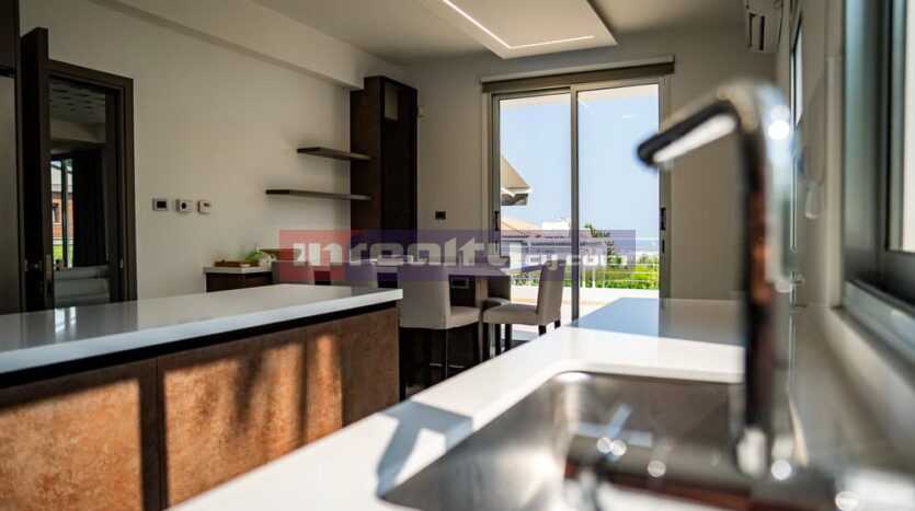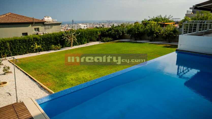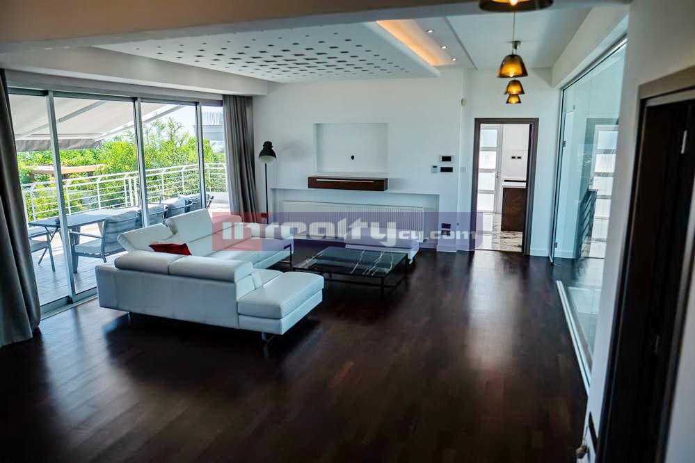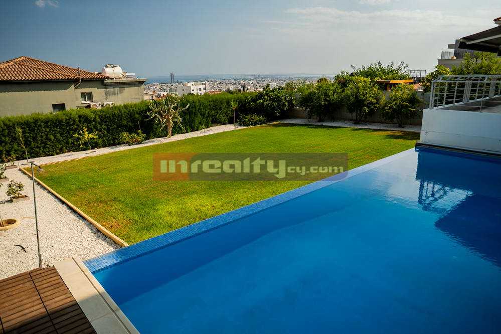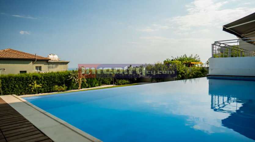 This breathtaking villa in high tech style with beautiful sea views is located on the hills of Agia Fyla area. The property is built on a plot around 1100 sq.m and has around 400 sq.m covered areas. It consists of basement with covered parking, machine rooms and 1-bedroom flat with shower, office room; ground floor: living & dinning areas, large separate kitchen, guest WC, veranda & overflowing swimming pool; 1st floor: master bedroom with walk in closet & en-suite shower, main bathroom. Numerous features include: c/heating, a/c units, parquet throughout, blinds, extremely modern and luxury fittings, water well etc. For those having exceptional taste!