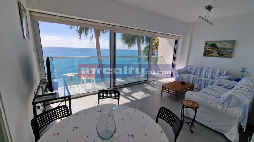 This stunning, bright, 100 sq m seafront apartment 3 bedroom with 2bathroms offers the ultimate coastal lifestyle, combining comfort with its direct access to the beach and a private balcony offering panoramic breath-taking sea views of the Mediterranean. Recently renovated and meticulously maintained, this residence is ready for immediate move-in. Includes a generous master and two additional well-appointed double bedrooms with fitted wardrobes. It comes with a parking place Rented fully furnished.